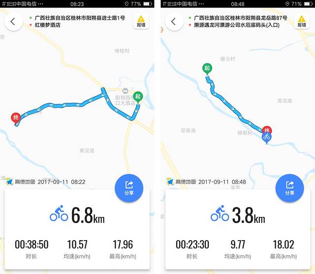 9. 在阳朔推荐骑行游玩,共享单车很少,建议租单车或者电动车,单车一天10块钱,电动车不超过40块钱一天。