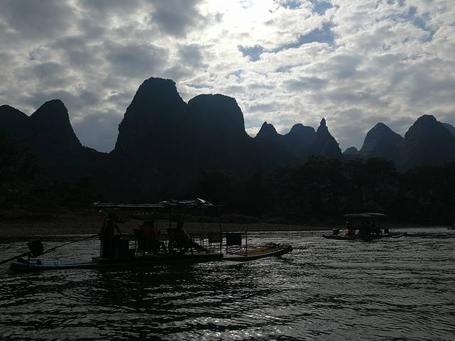 游了30分钟左右快要结束的时候会看到九马画山。传说是孙悟空大闹天宫时跑出来的九匹神马来到了漓江边喝水,被一个画工看见了,想把他们画下来,却不想神马受惊慌乱之中躲进了山里变成了现在的九马画山。当地说的是看到七匹中榜样,看到九匹状元郎,你们能看出几匹,我反正是只看出了一匹~