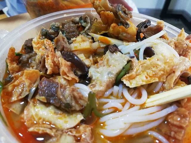 岚方螺蛳粉要的是金牌螺蛳粉吧,15块钱这样,很大一碗,内容很多,有牛腩,豆皮,螺,青菜等等,微辣,对于我来说已经算中辣程度了,不太能吃辣的慎选择辣度。