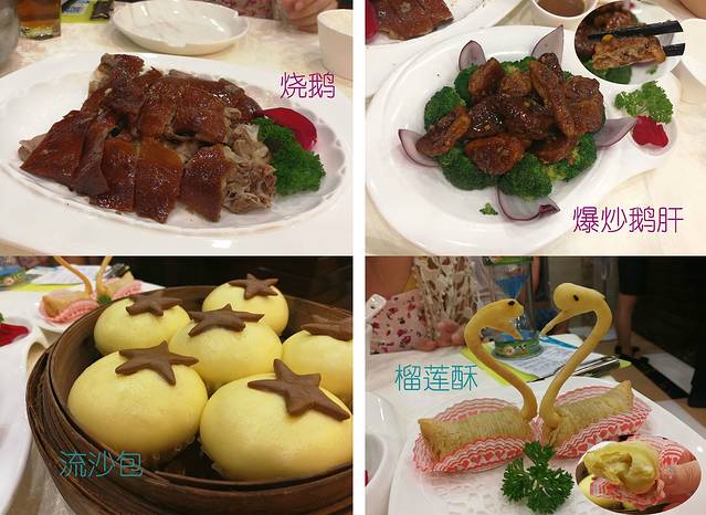我们点的都是大众好评上排名比较高的菜,烧鹅一例58, 爆炒鹅肝38or48,流沙包半打18, 榴莲酥2个9块。
