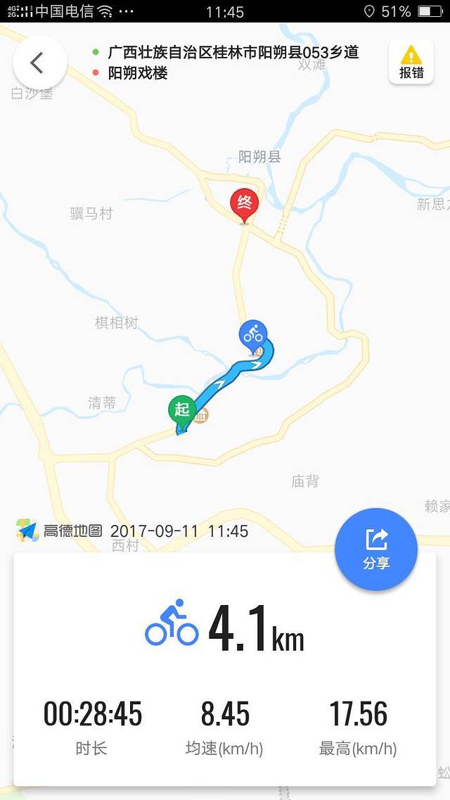 12点大巴驶向阳朔,不到一小时就到了县城,我们是在天伦酒店下车打滴滴到了客栈,不过起步价8块钱。我们住的客栈在抗战路,离西街15分钟路程,离遇龙河厄水底码头骑行差不多1小时,10公里不到,附近吃饭,租车,买东西都方便的,最重要的是老板给了一张阳朔地图和一些小tips,对于我们来说实在是节省了很多时间去自己探索。