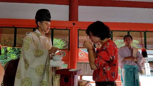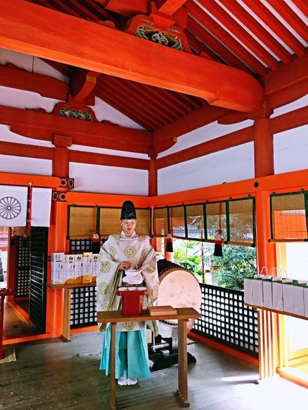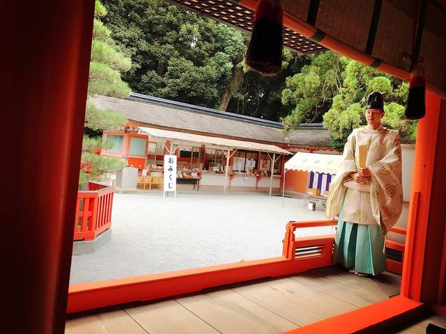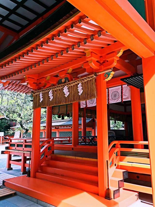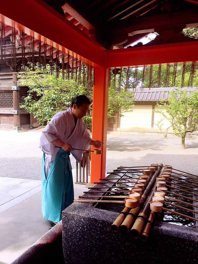按照我们之前做好的攻略,我们今天准备先去一个幸福满满的日本神社祈福。这个神社叫做香椎宫。传说这里供奉的是一对非常恩爱的夫妇,所以祈求家庭幸福美满特别灵验。由于不是旅游季节,神社里游客很少。这也是我大爱福冈的原因之一,就是对比东京、大阪、京都这些热门旅游城市,福冈是一座非常惬意的城市,基本上不会出现只看得见人头的状态。特别幸运的是,一直供奉神社的木下家族的继承人,真的继承人哦,特别给我们做了介绍。而且,最大的彩蛋是让我们真正体验了一把神社中的祭司供奉神灵的全过程。日本的神社都在自然环境非常好的地方,尤其是基本上都会有森林,香椎宫也是一样。附近还有一个不老井,溜达5分钟就到了,周边的居民们都拿着桶过来打水呢。香椎宫门口还有几颗苍天大树,树的上端不知道问什么有点云雾缭绕的感觉,真的是很神奇。