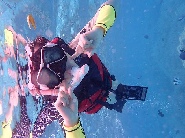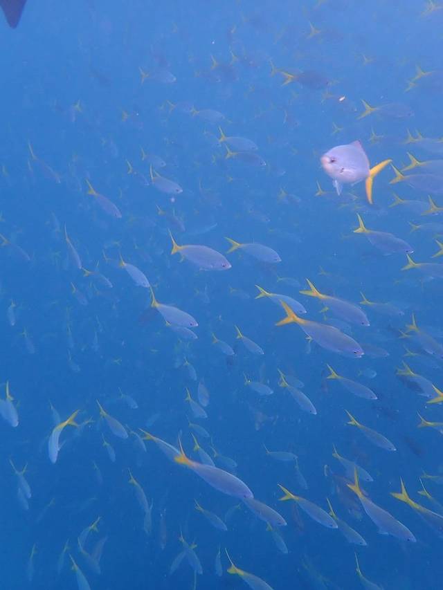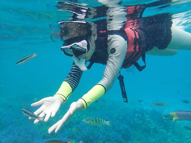 在船上发了面包球,可以喂小鱼。下水之后,还没有张开手,好多小鱼就围了过来,这种感觉真的是棒棒哒。