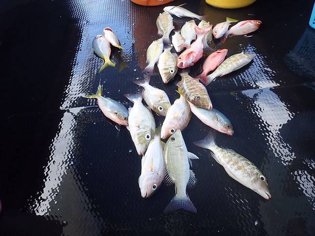 第一天上午钓鱼,导游说为了午餐我们要加油钓鱼,我们船上的人真心给力,这么多的鱼。不得不说一个“服”字。看来中午可以美餐一顿了。
