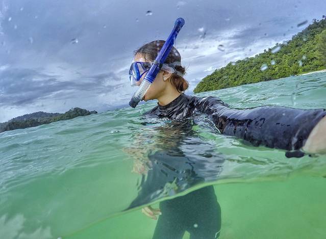 你可以潜下水中,在水底看天光云影,与美丽的海底世界合影;