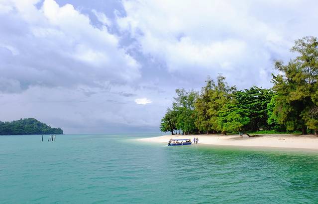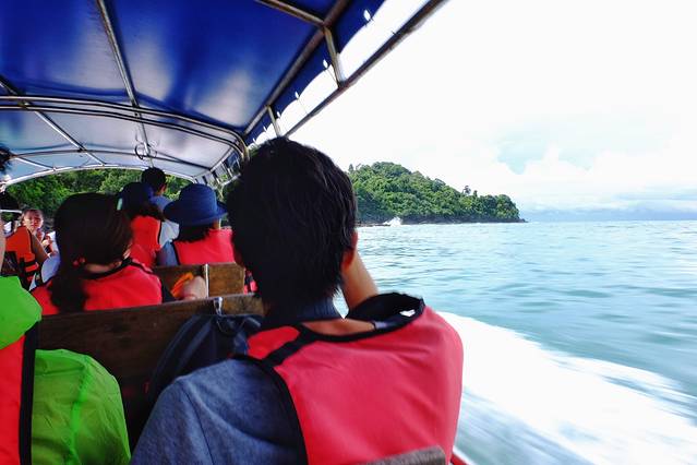湿米岛有细白的沙滩和清澈的海水,跳岛游的船只在这里停下,让客人上岛拍照或自由浮潜。这里的海水比较浅,站着就能够着地,不需要穿着救生衣来浮潜。不过水下的环境很不好,浮潜也没什么意思,这还是此次行程里唯一可以浮潜的地儿。