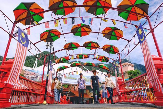 穿过东方村就可以抵达天空之桥入口,这东方村说来名头还不小,这里是周润发电影《安娜与国王》的拍摄地,位于兰卡威第一高山马西冈山的山脚下,园区里颇具东亚情调,绿化很美。