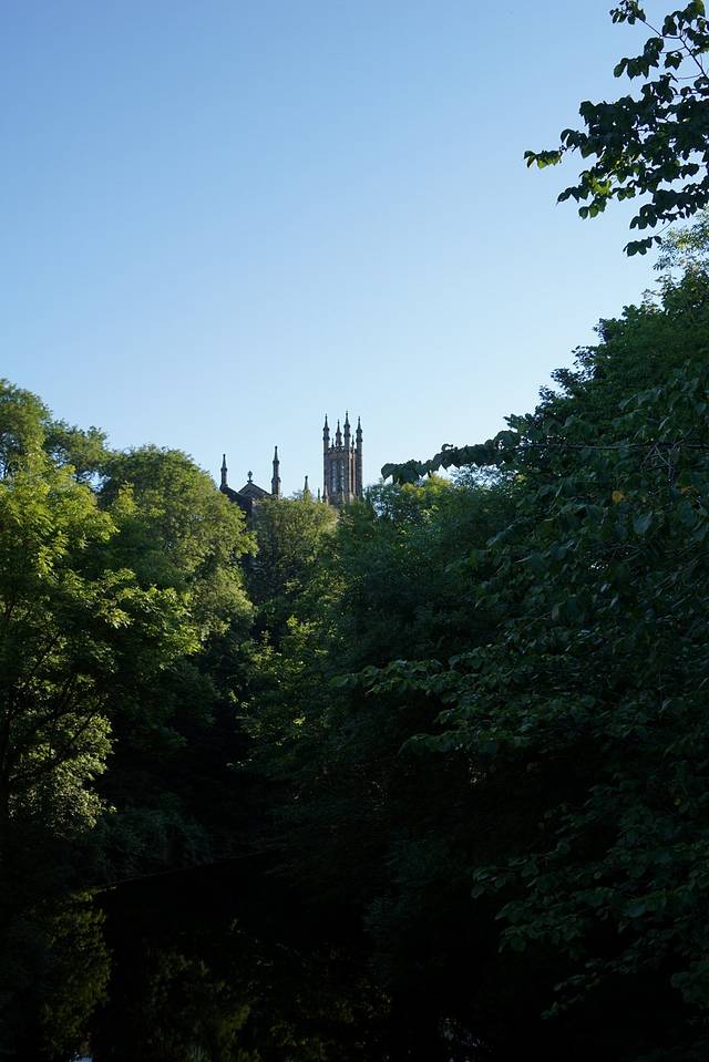 城堡建于湖中一个小岛上,一座石桥跨湖连接城堡与陆地,安静的湖水和古老的城堡构成一幅如诗如画的美景,曾是007等电影拍摄地