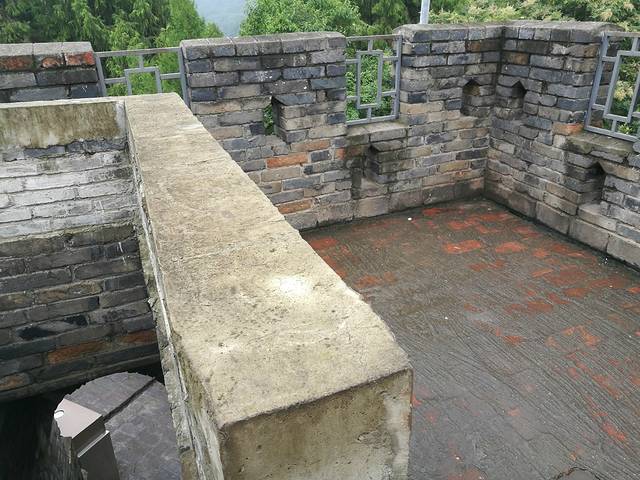 台阶和城墙部分用烧制的大青砖,更多用黄土砖砌成。