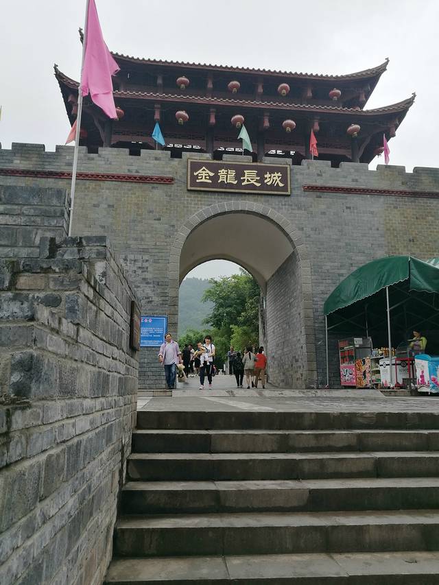 城门楼上书写“金龙长城”四个大字