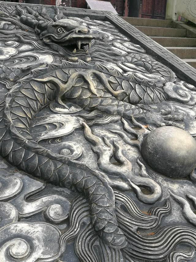 台阶浮雕上的双龙戏珠