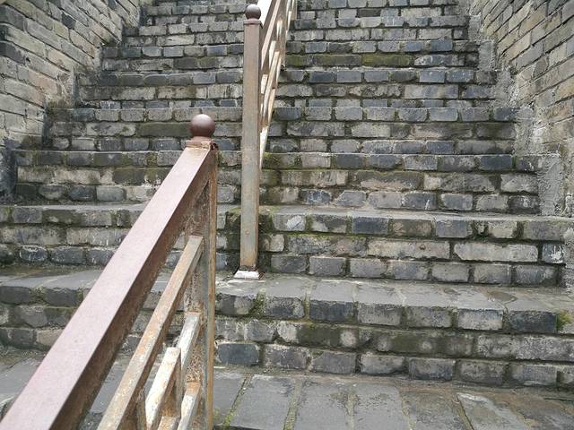 登上城门内右侧的入口台阶