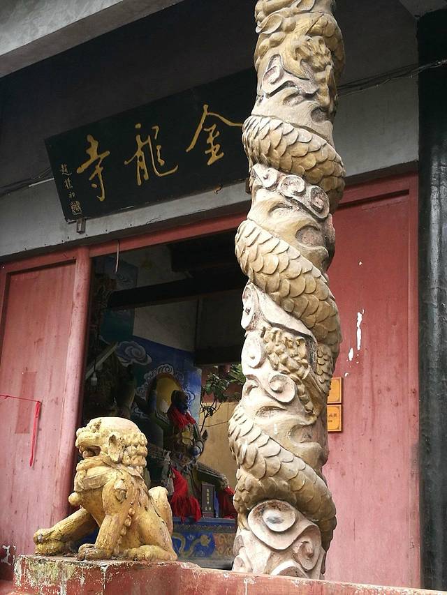 门前龙柱,里面是四大金刚塑像。