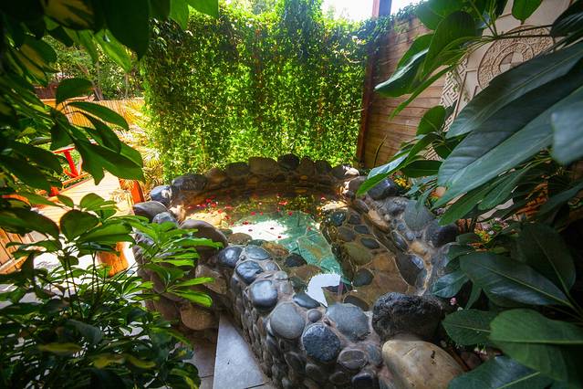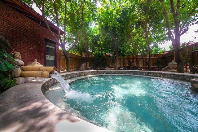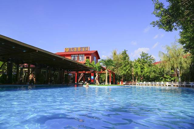 树环泉;泉映天,旖旎迷人。温泉区有清水池,清澈见底;有加料池,有加柠檬的、红酒的,等等,泡在温暖的池水里,闻着沁人的香气,心旷神怡;躺在温暖的池水里,沐浴在和煦的阳光下,看看四周的风景,聊聊趣闻。爱情,在不知不觉中盛开。若是春天,四周景色更美,看花红柳绿,闻鸟语花香,想是更为浪漫温馨。