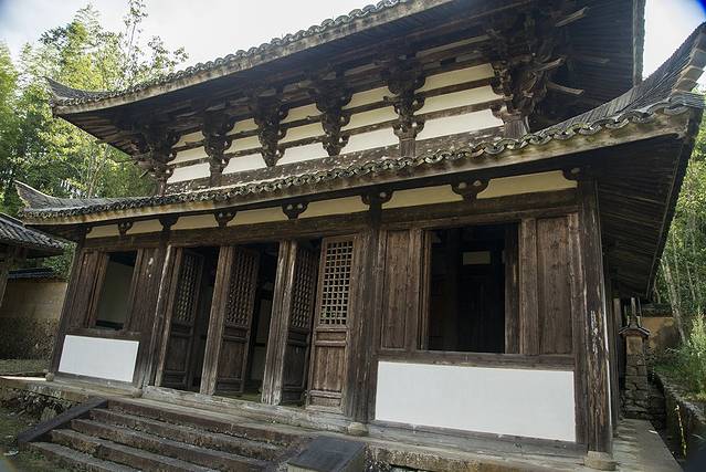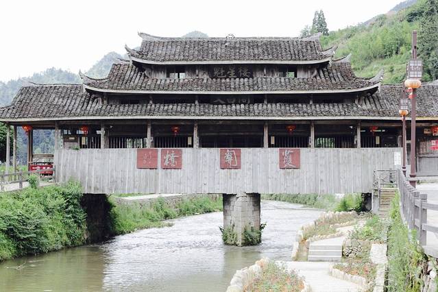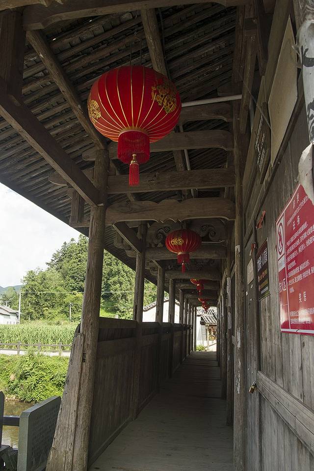 由雪花漈往前大约400米,便进入古村区域了。首先引入眼帘的便是溪上的一座廊桥护关桥,它比后面的胡桥更大气些,是一座清代的三层木结构廊桥,游人可入内参观。由下而上分别是关公庙、文昌阁和魁星楼。云中大漈的瑰宝时思寺就在桥对面,这座三教合一的寺庙是非常珍贵的文物,里面有三座历史建筑,中间的大雄宝殿是货真价实的宋代建筑,尤为可贵。最里面的马仙宫是祭祀当地神祗马夫人的;而当你走上最外面的明代钟楼,可以远望周边的小山谷和稻田。