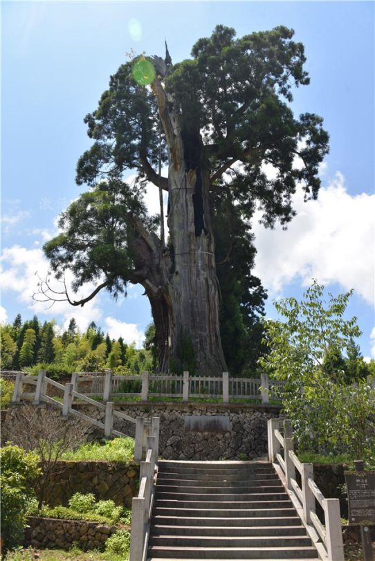 好高的树呀!时思寺外的梅氏宗祠旁有一棵据说已有1500年树龄的柳杉王,粗大的树干已经中空,树叶依然青翠,也是当地一景。