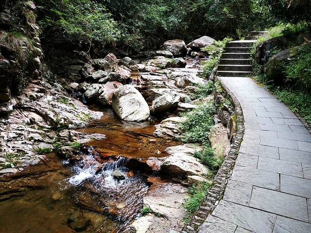 沿着山间小路往前走,并不如其他山林景区的一阶阶台阶爬的辛苦,这里的石阶让人很轻松,一边看着美丽的风景就过去了,完全不会感觉疲累。