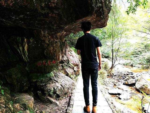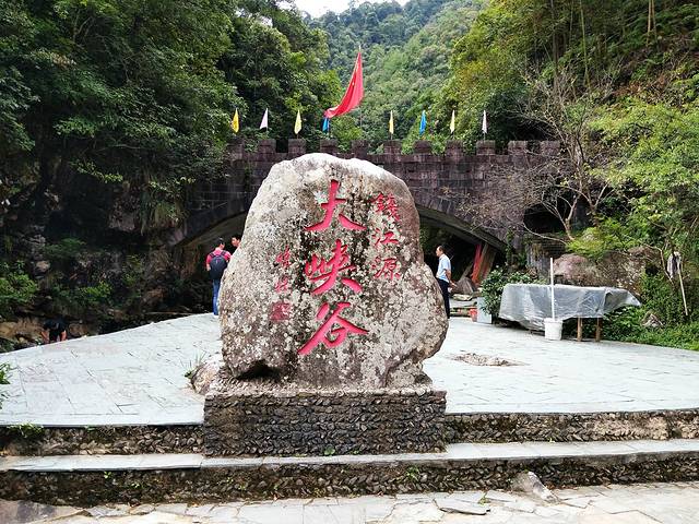 这里没有过多的商业气息,零星的有着农家乐。走过石桥,就能看到一块大石,红字题着“钱江源大峡谷”。
