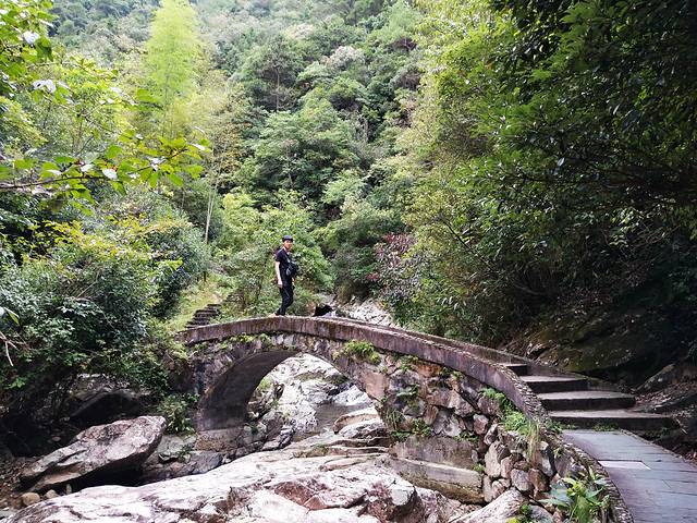 一路往上,都是清澈的溪流陪伴,溪水太过清澈,让人会忍不住想停下来掬一把感受它的清凉。这一路,听着清脆的水流声,呼吸着天然氧吧的清新,穿过一座座古朴石桥,就能看到不远处的神龙飞瀑了。