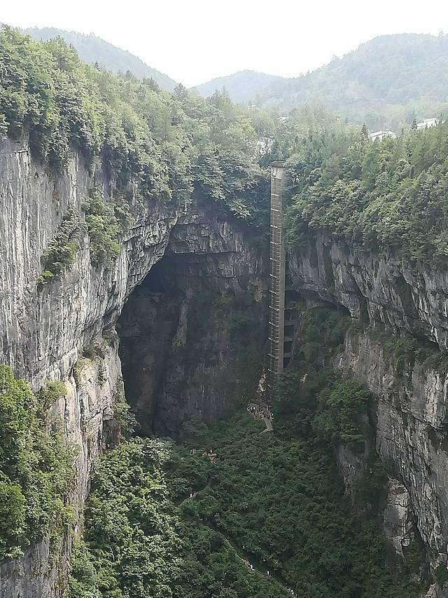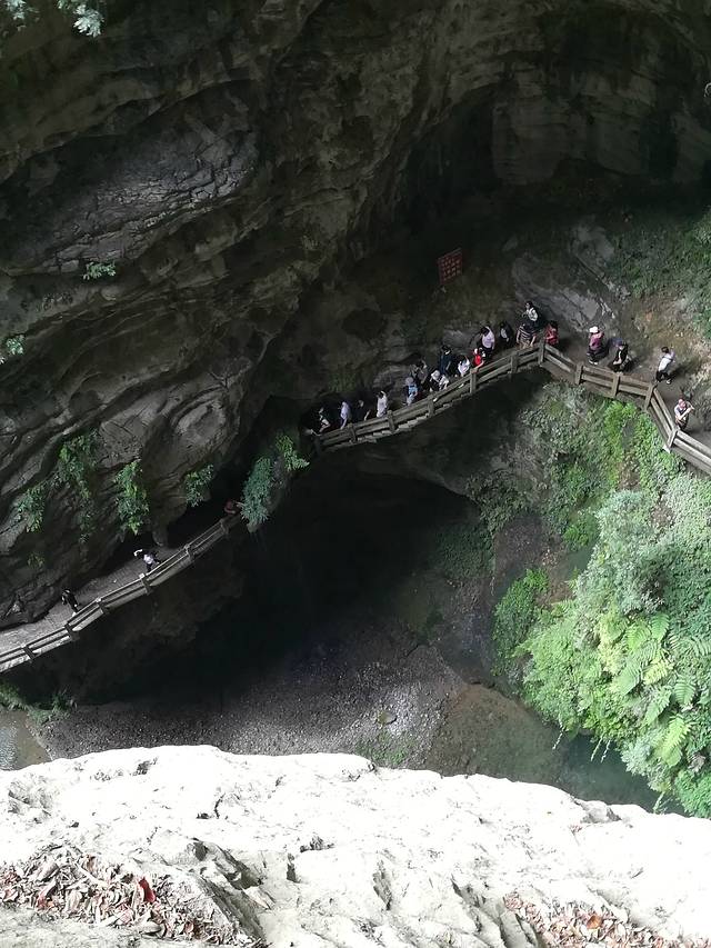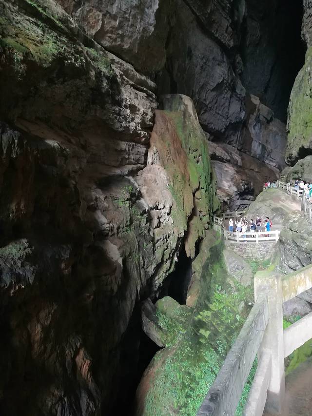 地缝也是坐电梯下去后再走小路,只是小路比天坑还要险。