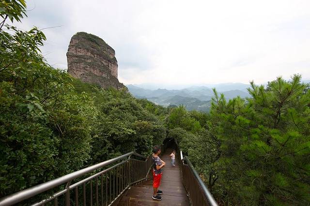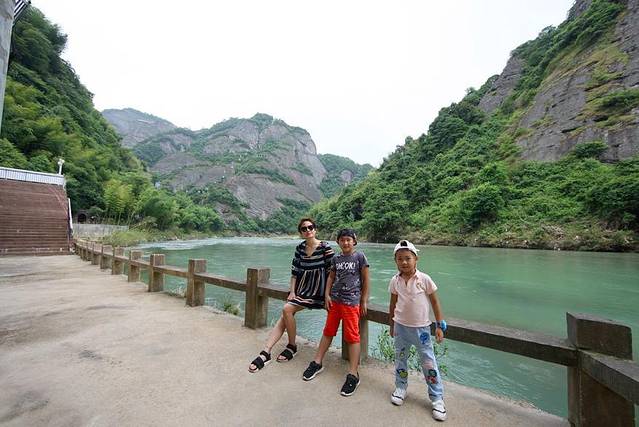 资源县便是如此。来到资源县的天门山景区,一股古朴的气息扑面而来,并没有展现出太多商业开发的气息。天门山是资江上最精华的区域,它处于群山环抱之中,犹如天门中开般雄镇资江。景区以“溪曲山山水,山环露露峰”构成了奇幻百出的山中有山、峰后有峰的绝妙景观。该景区方圆10平方公里,山形峻秀,岩壑多奇。其三十八岩、十九涧、二潭、六泉、八石等构成“百卉谷生态景园”。汇天下本草于一地的百药谷,药香盈溢。主峰“三娘石”宛如一柱擎天,“天门壁画”、“天脊”、“一线天”“忘忧泉”、“桃花岛”、“天门古寺”等20多处绝好佳景,汇聚成仙山琼阁之境。两个孩子早就醒了过来,陪着先生停完车后,我们就满怀期待踏入景区大门,怎么形容呢,几乎就是一幅世外桃源的图景。全国各地有数个天门山景区,资源的天门山的丹霞风貌堪比福建的武夷山,不亚于湖南的张家界,由于它深藏闺阁之中,来此游玩的人并不是很多。景区中除了美丽壮观的丹霞地貌外,还有天门寺、观音庙、土地庙等佛道寺观,也有赵朴初、林之源、秦宇生等名家的题刻,以及众多的其它人文景观。一座座奇峰峻岭,超凡入世。美丽的资江中,可以窥见倒影着雄伟的丹霞山脉。抬眼望去,拔地擎天的天门山,山势陡险峻拔,景色雄奇壮丽,气势磅礴,巍峨高绝。当时游客并没有太多,因此我们为了更加有范儿地感受这个天门山景区,首先是乘船在资江漂流,观赏资江两岸风光。