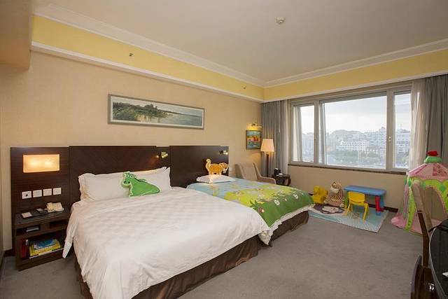 D2: 一个小时左右的车程,我们在当天上午来到红溪景区亲水,下午3点左右我们又用了一个小时的时间自驾到桂林,入住漓江大瀑布酒店。原因其实很简单,毕竟带着孩子出来,自然要选择环境好一点的酒店,同时漓江大瀑布酒店地处桂林市中心的繁华地段中心广场,交通便利,且临近计划中明天准备要去的景点——象鼻山和桃花江,也能够一定程度上减轻步行的负担。