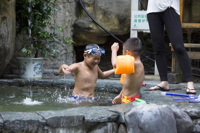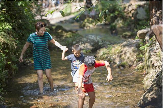 我记得小儿子还问,为什么这里叫红溪(小孩子的思维总是特别奇怪)。我大儿子一副不屑(当时看来是这样的),“因为这是石头都是红色的呗”。我和先生扑哧一笑,的确如此,由于景区中的溪石大多为红色紫砂岩,因而得名红溪。
