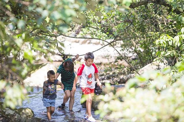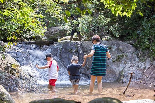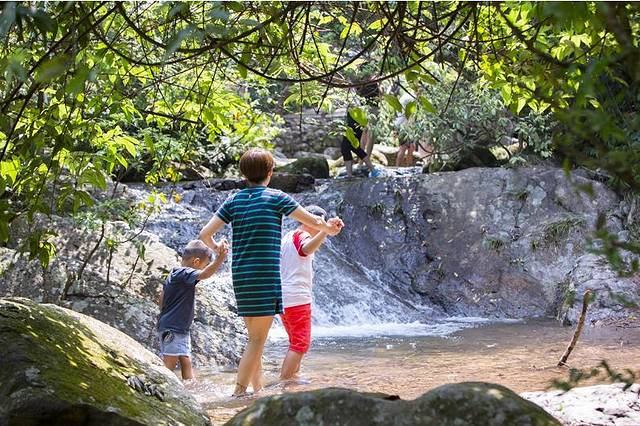 一个多小时的车程之后,我们一家四口出现在位于桂林市临桂县中庸乡的桂林红溪景区。红溪作为国内富有特色的原生态景区,景区内空气清新、气候凉爽,瀑布众多,碧潭清幽,可以不夸张的说真是“日光下彻影布石上”,怪石嶙峋,草木葱郁,古藤错落有致,池边野花算是茂盛非常,与瀑、石构成了不可多得的美妙场景。