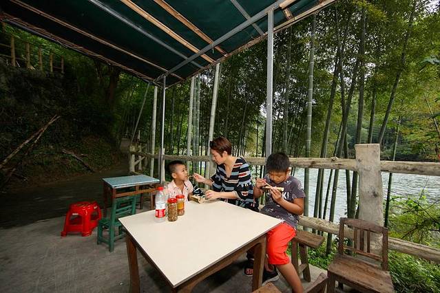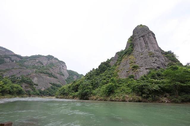 游览中我和先生感触最大的就是资江两岸植被保护良好,甚至当我们回到成都依旧津津乐道。穿梭于奇山峻岭之间。我们漂流在风光旖旎的资江,两岸奇峰突兀,怪石嶙峋,云烟缥缈,竹木葱笼,山花烂漫,水鸟低飞,莺啼婉转,江畔竹篱茅舍,掩映于翠绿丛中,茅屋俏然。游客会感觉到,资江除具有原始、古朴的特色外,更富有一种灵动、秀丽之美,堪称绝景。坐在船上,看那岸边的山岩丹光隐隐,陡峭如刀削,给人以险的同时又给人以美感。船慢慢地行驶在资水之上,一座座大山迎面耸立,巍峨的山影直指蓝天。崖壁上几乎寸草不生,但山巅之上却林木葱茏,并有小亭点缀其中,我想如若遇上云雾缭绕,这里的景色一定会如仙界一般。