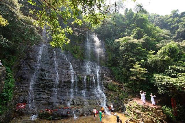 这里的水很清凉,红溪瀑布多,造型美——清凉雄浑的红溪幽瀑,高山流水一瀑三折的红溪长瀑,日晚倦梳头的龙宫瀑布,在天愿作比翼鸟的鸳鸯瀑布,芝麻开花节节高的仙梯瀑布等。红溪金瀑是红溪瀑布群中最大的瀑布,目前高35米宽约60余米,水流从悬崖树木间流出,经结构精美的千层岩石,或轻盈缓慢,或急流直泻,层层叠叠而成局部精美、整体气势雄伟壮观的千层大叠瀑;如秋水从长天落下,化成的无边银河,青苔绝壁,彩虹飞舞。