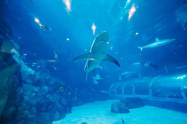 进门就来个鲨鱼馆,这里汇聚超过200条鲨鱼,我跑~