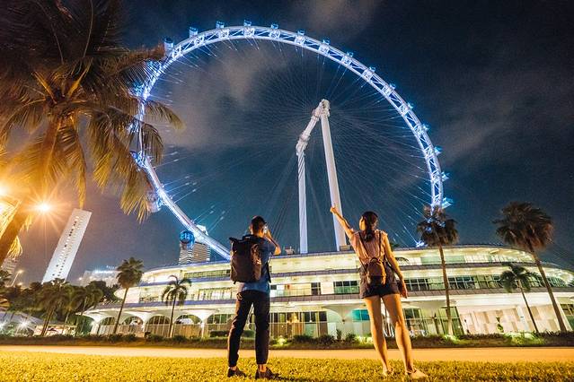 穿过Helix双螺旋桥,从摩天轮走回金沙。