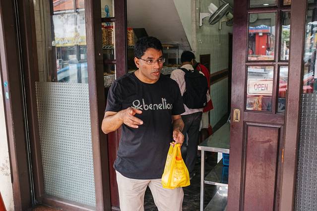 马里安曼兴都庙后面的阿三正在做某种仪式的转圈圈游行。走在前台的拿着印度乐器奏乐,随后的几人又托着食物,中间还有一个人撑住花伞,所有人都口中呢喃,若有所思。对印度教一窍不通,完全看不出个所以然,不知道是喜事还是悲事。