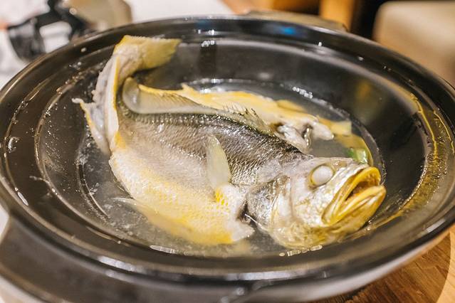 百秒黄花鱼,菜如其名,说好100秒不多不少完美出锅,打破8分钟蒸一条鱼的传统法则。看着就无比鲜美嫩滑,用个小勺挂上点汤汁一起入口,绝啊~~