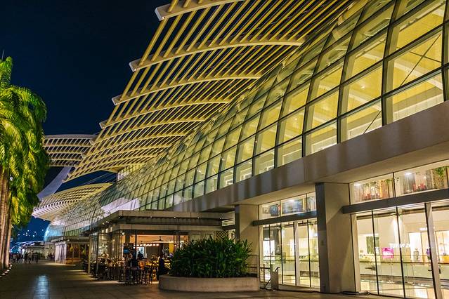 滨海艺术中心不仅外观独特,建筑物蕴含了不少的科学计算。屋顶的遮阳罩总共由4590片玻璃所组成,依据当地日照分布来设置不同的角度。