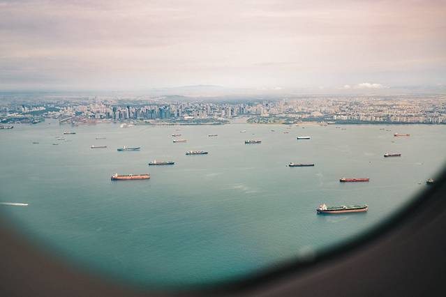 我们是从吉隆坡转机过来,全程只要不到一个小时,就是屁股还没坐热就给你来广播We will be landing shortly,注意如果是坐在左侧的靠窗的座位,那在飞机上就能看到滨海湾一带啦。
