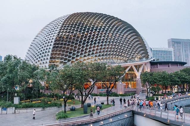 美美的睡个自然醒,寻思去鱼尾狮公园,Google迷之导航把我们带到了滨海中心Esplande,其实鱼尾狮公园去来福士坊Raffles Place会更近些。从滨海中心站一出来就看到新加坡海滨艺术中心,就是那大名鼎鼎的两坨大榴莲,是坡国最具特色的现代建筑之一。