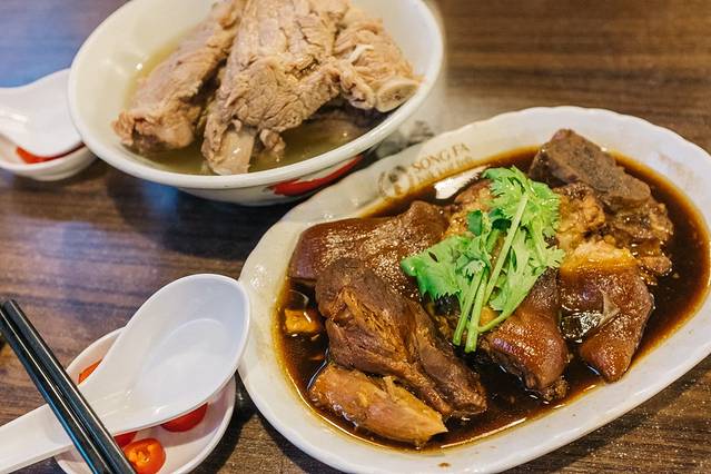 环球影城疯了一天,地铁实在是挤不动了。晚上直接用Grab打车去克拉码头的松发肉骨茶。