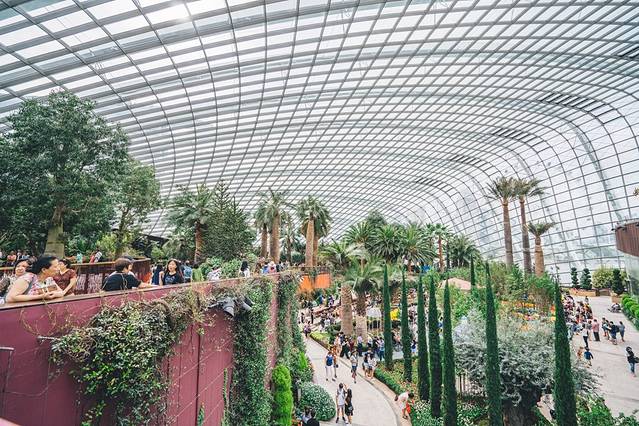 进入花穹,哇~真大,接近两个足球场的面积,根本感受不到一丝室内的感觉,里面种满了让人叹为观止的花木,简直是都市中的绿肺。