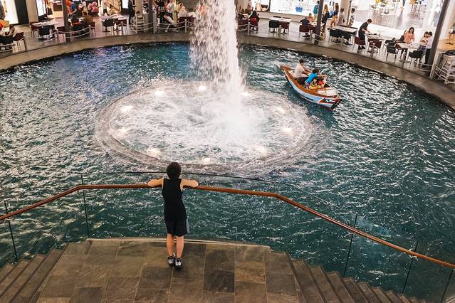 商场最下一层还别出心裁的设置了一条模仿威尼斯的小运河,甚至连贡多拉游船也一并模仿了,只不过和真的贡多拉相比,那是简陋太多了。