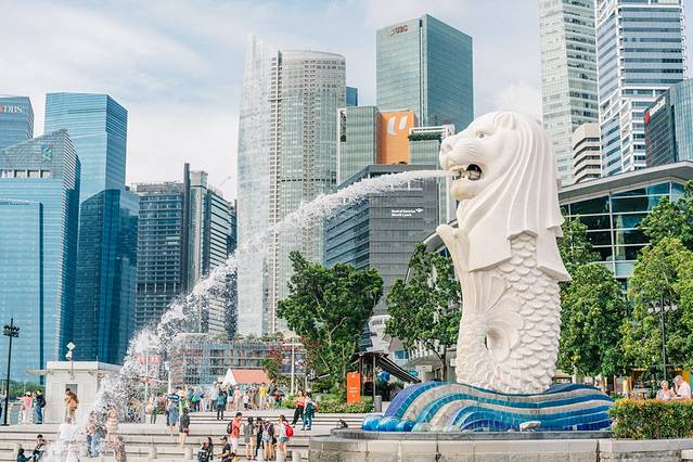 鱼尾狮是一种虚构的鱼身狮头的动物,坐落于滨海湾河畔的这个喷水的鱼尾狮雕像无疑是城市地标。关于鱼尾狮的来源据说是公元14世纪时,某个王子在前往马六甲途中来到了一个小岛,他一上岸就看到一只神兽,身边的随从告诉他那是一只狮子。他歪脑筋一动就为此岛取名为Singapura,在梵文中即狮城的意思,而鱼尾则寓意新加坡一切都和海相关。