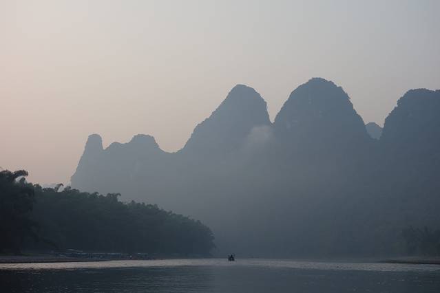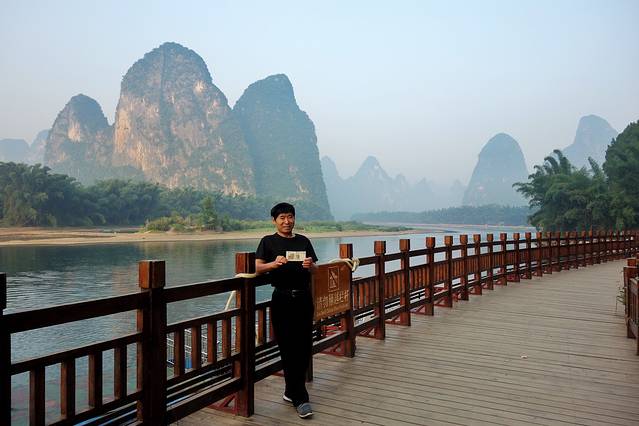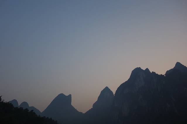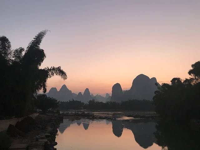 提前一天与客栈联系好早上乘伐游漓江,不知道为啥定的闹钟没有响,联系上的时候已经6点了。