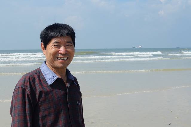 他说他的照片里面要有船,可是船太远了,很难拍的明显