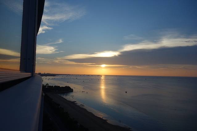 买完东西回来就已经6点了。洗个澡看个日落然后出门吃饭。
