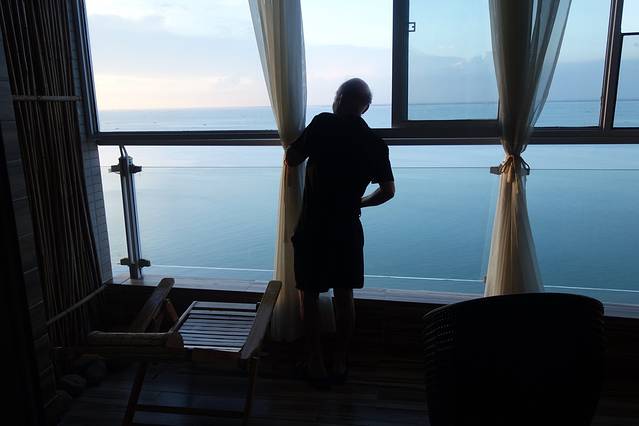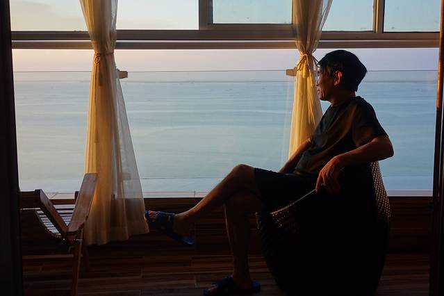 起床吃完早餐天一直都是阴阴的,心里很焦虑啊,没有阳光的大海有啥可看的。虽然看天气预报一个礼拜都是雨,并且台风预警刚过,可是内心还是抱着侥幸的心理。