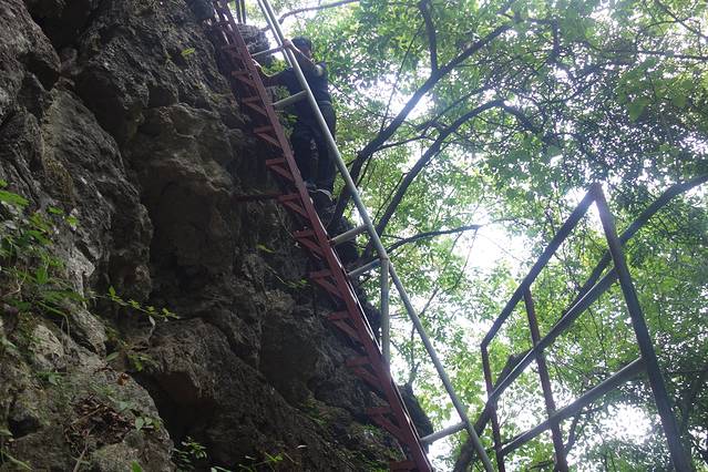 好说歹说终于把他怂恿着和我一起爬老寨山,不过太热了,汗如雨下。然后社水爬起山来比我快多了,我上两个台阶就喘得不行。