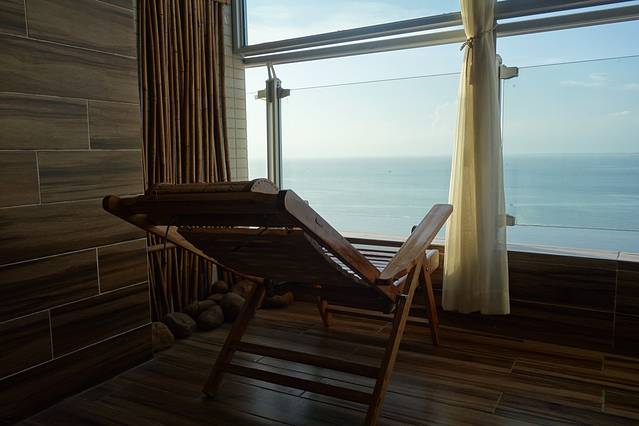 来到房间真的很满意!248元预定的是豪华海景套房,房间很大,风景很美!
