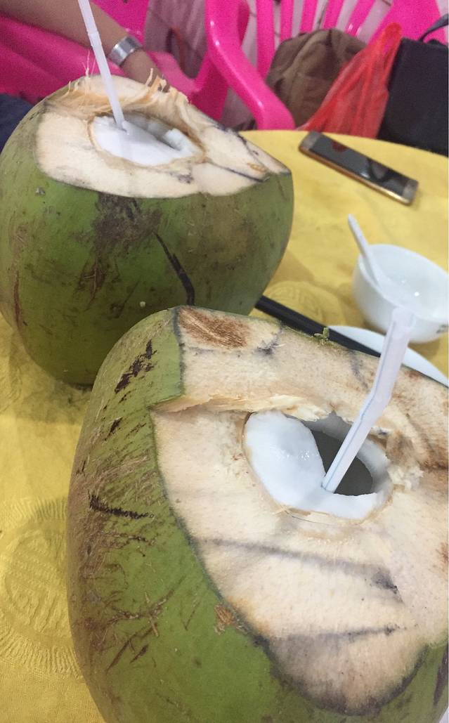 先生接到我之后,我们坐了差不多20分享的样子的车到住的地方,然后就是去海鲜市场买菜,加工,海口的的士都是好人,好多都是他们推荐的,当然主要是靠我家严先生的一张嘴跟人混老熟了😏,我就跟着闷声吃😄,当晚吃到了最大的皮皮虾,梭子蟹,海虾,还有椰汁!严先生每次就怕我吃不饱,像我是被放出来的一样点了很多,两个人没有吃完,还打包了
