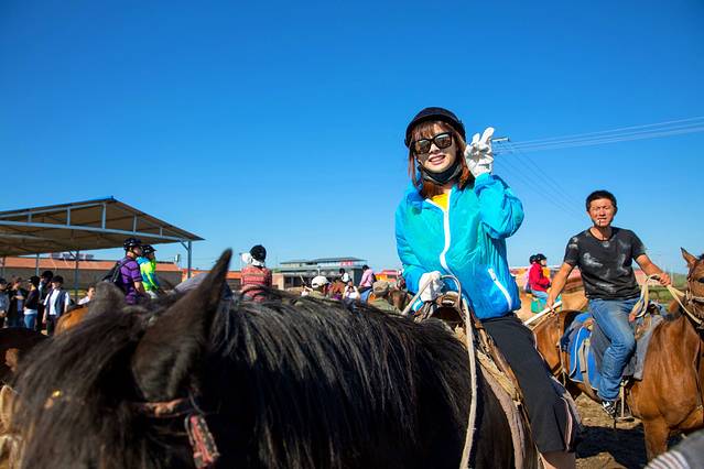 好不容易等到一匹黑马。一跃坐上马,嘚瑟地赶紧来几张照片。殊不知下一分钟的我会吓得魂飞魄散。