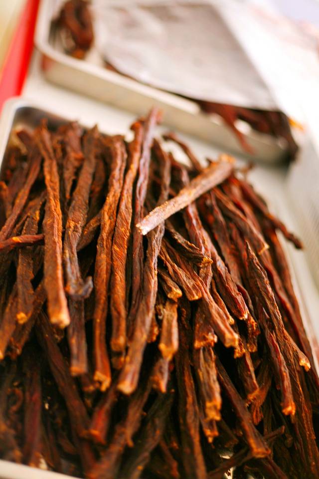 这里的店家都很热情,会邀请你这种品尝。但是,我们的领队说这里的牛肉干都是掺了别的肉的,所以不建议买。我觉得牛肉干太硬了,不好咬,所以不是很偏爱。